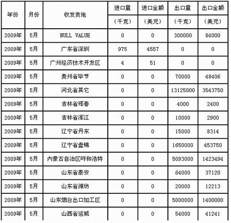 5月中國尿素進(jìn)出口統(tǒng)計(jì)數(shù)據(jù)