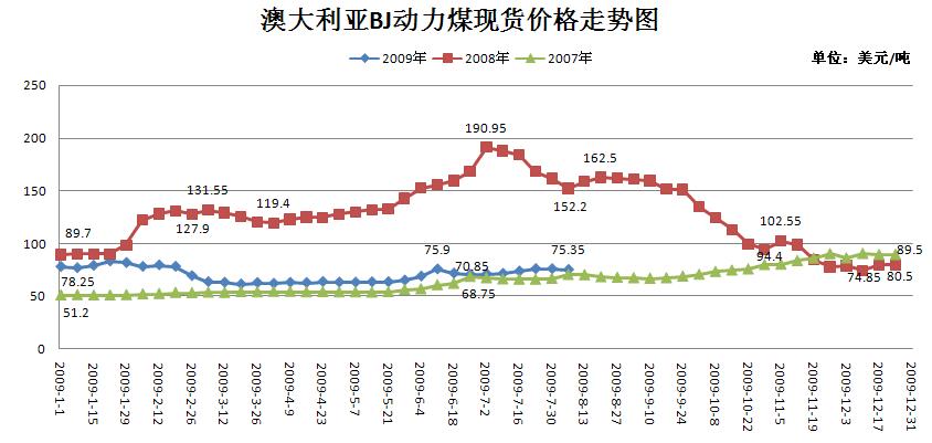 澳大利亞BJ動力煤現(xiàn)貨價格走勢