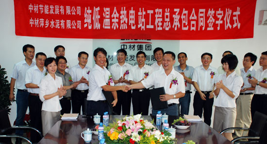 近日,中材萍鄉(xiāng)日產(chǎn)2500噸新型干法熟料生產(chǎn)線配套4.5兆瓦余熱發(fā)電項(xiàng)目總承包合同在天津簽訂。