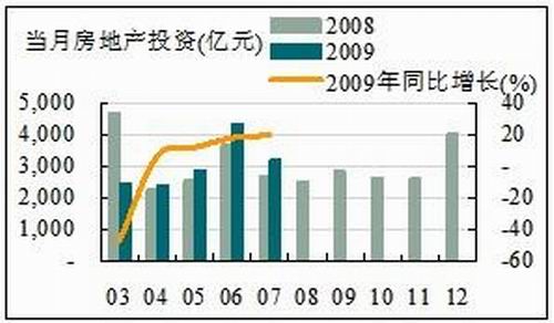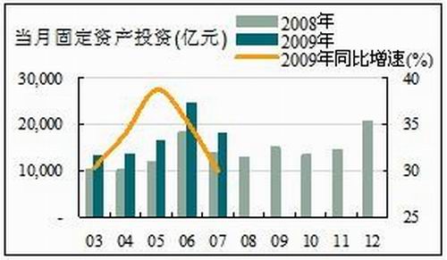 7月份城鎮(zhèn)固定資產(chǎn)投資額為17,833.66億元,較6月份有所回落;從同比增速看,繼6月份略有回落之后繼續(xù)下滑,但仍保持在29.94%的高位水平。
