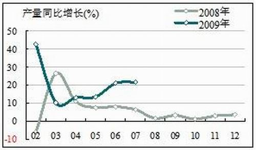 2009年1~7月發(fā)布的運(yùn)行數(shù)據(jù)顯示,產(chǎn)業(yè)發(fā)展良好,全國(guó)水泥累計(jì)產(chǎn)量同比增速繼續(xù)創(chuàng)年內(nèi)新高(剔除1~2月份),