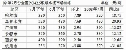 ——7月,水泥市場(chǎng)的還未進(jìn)入銷(xiāo)售旺季,全國(guó)大部分地區(qū)水泥價(jià)格平穩(wěn),東北和西北價(jià)格成為7月的亮點(diǎn)。