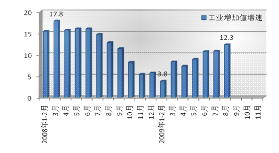 從主要工業(yè)品的增長情況看,8月份全國工業(yè)增加值同比增速達(dá)到了12.3%,1-8月累計增長了8.1%。盡管8月份增速有明顯的加快,但仍比上年同期的增長水平低0.5個百分點(diǎn)。