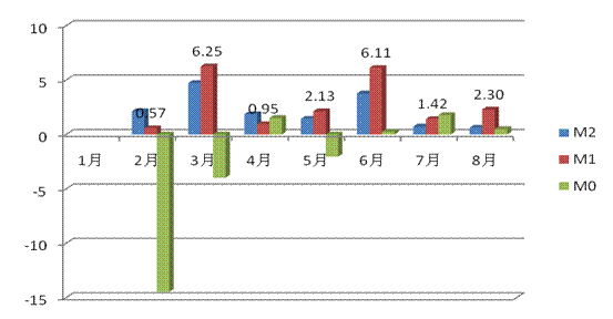 8月份貨幣供應(yīng)量環(huán)比增速大幅下降,市場流動性稍嫌不足。8月末,M2余額為57.67萬億元,同比增長28.53%,增幅比上年末高10.71個百分點(diǎn),比上月末高0.09個百分點(diǎn);M1余額為20.04萬億元,同比增長27.72%,比上月末高1.34個百分點(diǎn);M0余額為3.44萬億元,同比增長11.52%。