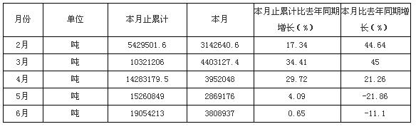 2009年1-6月吉林原煤產(chǎn)量統(tǒng)計(jì)