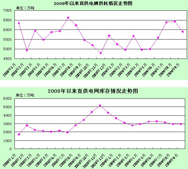 2008-2009年9月直供電網(wǎng)供耗、直供電網(wǎng)庫存情況走勢