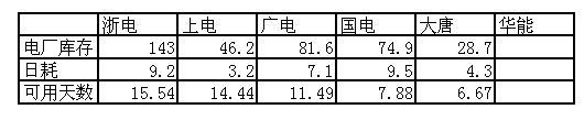 2009年11月15日直供電廠煤炭庫存統(tǒng)計
