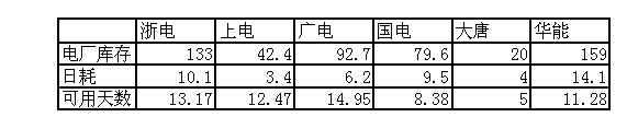 2009年11月19日直供電廠煤炭庫存統(tǒng)計(jì)