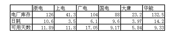 2009年11月21日直供電廠煤炭庫存統(tǒng)計