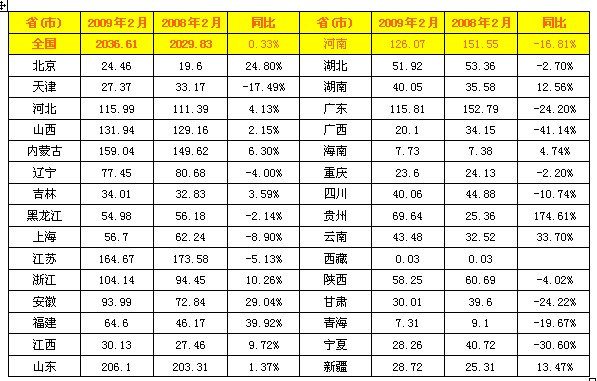 2009年2月全國(guó)火電發(fā)電量統(tǒng)計(jì)
