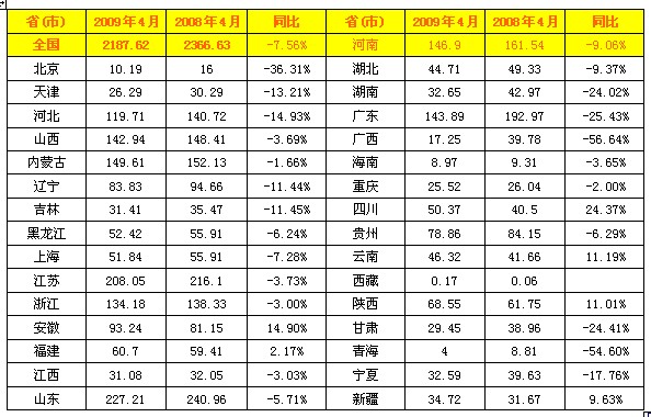 2009年4月全國火電發(fā)電量統(tǒng)計