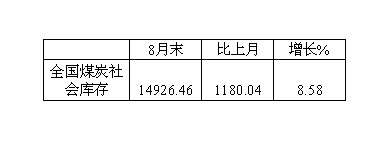 2008年8月全國煤炭社會(huì)庫存統(tǒng)計(jì)