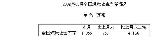 2009年6月全國煤炭社會庫存統(tǒng)計