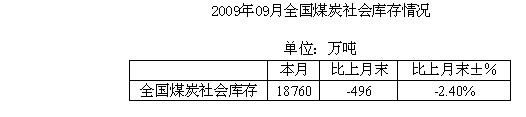 2009年9月全國煤炭社會(huì)庫存統(tǒng)計(jì)