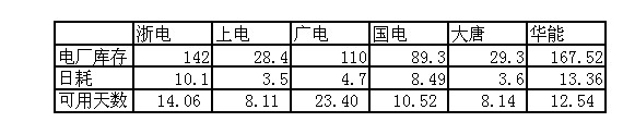 2009年12月1日直供電廠煤炭庫存統(tǒng)計