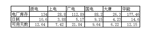 2009年12月5日直供電廠煤炭庫存統(tǒng)計(jì)