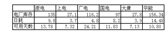 2009年12月8日直供電廠煤炭庫存統(tǒng)計(jì)