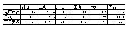 2009年12月12日直供電廠煤炭庫存統(tǒng)計