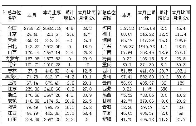 2009年11月全國火電發(fā)電量統(tǒng)計
