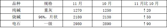 根據(jù)國(guó)家統(tǒng)計(jì)局?jǐn)?shù)據(jù),11 月份純堿產(chǎn)量205.3 萬(wàn)噸,同比增長(zhǎng)52.1%,日產(chǎn)創(chuàng)歷史新高,日均產(chǎn)量環(huán)比增長(zhǎng)25.3%,1-11 月累計(jì)純堿產(chǎn)量1836.9 萬(wàn)噸,同比增長(zhǎng)7.2%;燒堿產(chǎn)量182.7 萬(wàn)噸,同比增長(zhǎng)52.9%,日均產(chǎn)量環(huán)比增長(zhǎng)6.0%,1-11 月累計(jì)燒堿產(chǎn)量1762.7萬(wàn)噸,同比增長(zhǎng)6.8%。