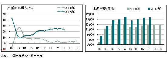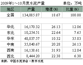 10月當(dāng)月全國(guó)水泥產(chǎn)量為15,635萬(wàn)噸,再次刷新單月最高產(chǎn)量紀(jì)錄;同比增長(zhǎng)23.85%,增速比9月減緩1.2個(gè)百分點(diǎn)。1~10 月份累計(jì)生產(chǎn)水泥13.4億噸,同比增長(zhǎng)達(dá)18.67%。這主要得益水泥行業(yè)在9、10月是傳統(tǒng)需求旺季。