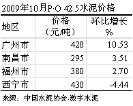 中南地區(qū)的水泥價(jià)格在廣州市場(chǎng)帶動(dòng)下大幅度上漲。其中廣東廣州地區(qū)的水泥價(jià)格第四次大幅度上調(diào),幅度為40~50元/噸,P?O 42.5水泥的價(jià)格攀升至420元/噸。主要是西江水位下降,導(dǎo)致廣西水泥只能通過(guò)汽車運(yùn)輸,運(yùn)輸成本大幅上升;同時(shí)市場(chǎng)需求一直呈現(xiàn)持續(xù)上升態(tài)勢(shì),使各企業(yè)供應(yīng)緊張,個(gè)別企業(yè)甚至空庫(kù)。在這兩大因素的推動(dòng)下,廣州水泥價(jià)格環(huán)比增長(zhǎng)了10.53%。