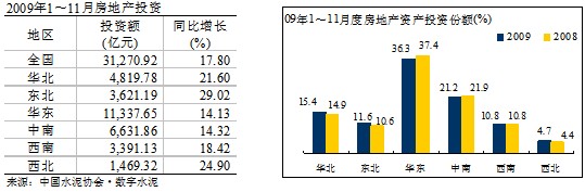 西南地區(qū)的華東、中南地區(qū)占全國房地產(chǎn)投資比重有所下降,分別下降了1.1和0.7個百分點;華北、東北地區(qū)略有上升;西南、西北地區(qū)基本與去年持平。