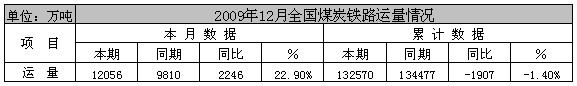 2009年1-12月份我國煤炭鐵路運輸情況統(tǒng)計