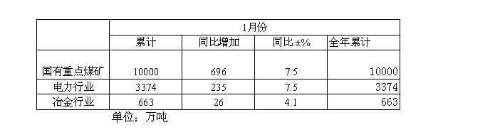 2008年1月我國煤炭銷量情況統(tǒng)計(jì)