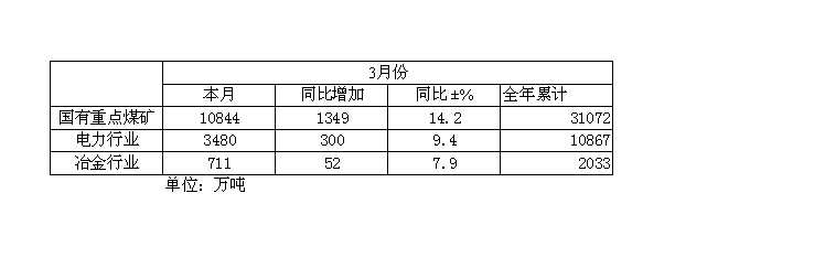 2008年3月我國煤炭銷量情況統(tǒng)計