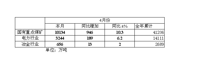 2008年4月我國煤炭銷量情況統(tǒng)計