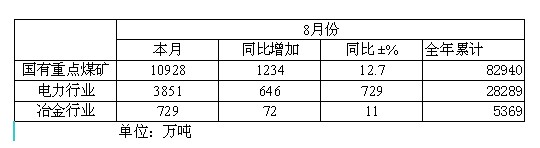 2008年8月我國煤炭銷量情況統(tǒng)計