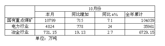2008年10月我國煤炭銷量情況統(tǒng)計
