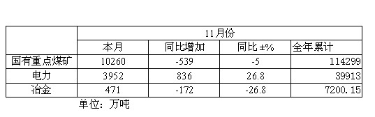 2008年11月我國(guó)煤炭銷量情況統(tǒng)計(jì)