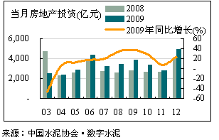 2009年我國(guó)完成房地產(chǎn)開發(fā)投資36,231.71億元,比上年增長(zhǎng)16.1%,增速比1~11 月回落1.7 個(gè)百分點(diǎn)。12 月當(dāng)月房地產(chǎn)投資完成4,960.79億元,同比增長(zhǎng)22.97%。