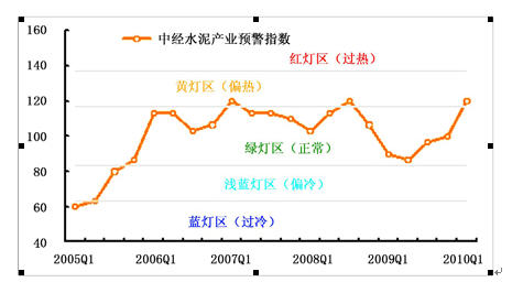 預(yù)警:2010年一季度,水泥產(chǎn)業(yè)預(yù)警指數(shù)為120.0點(diǎn),較上季上升23.3點(diǎn),快速上揚(yáng),進(jìn)入“黃燈區(qū)”運(yùn)行。水泥產(chǎn)業(yè)預(yù)警指數(shù)的上升主要是由于水泥產(chǎn)業(yè)的生產(chǎn)、銷售狀況同比出現(xiàn)大幅提升,出口亦開(kāi)始回升,且產(chǎn)成品資金占用出現(xiàn)明顯的下降,這使得水泥產(chǎn)業(yè)總體發(fā)展趨好。