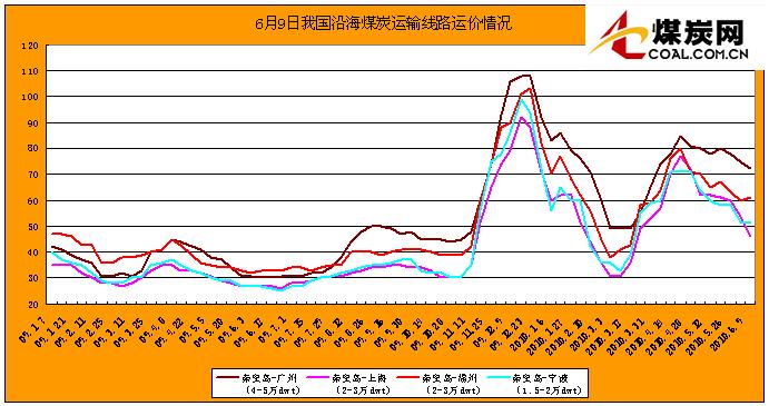 | 秦皇島 - 廣州(4-5萬(wàn)dwt): | 75 | 1863.02 | 72 | 1799.83 | -3.40% |