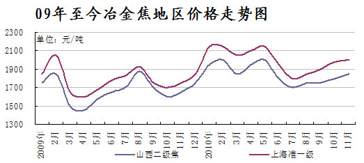 圖3:2009-2010年11月冶金焦地區(qū)均價(jià)走勢(shì)圖