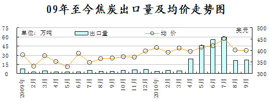圖4:2009-2010年9月焦炭月度出口量及均價(jià)走勢(shì)圖