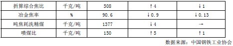 4、1-8 月重點(diǎn)鋼鐵企業(yè)煉鐵、煉焦單耗基本穩(wěn)定