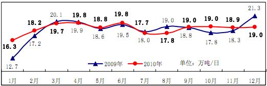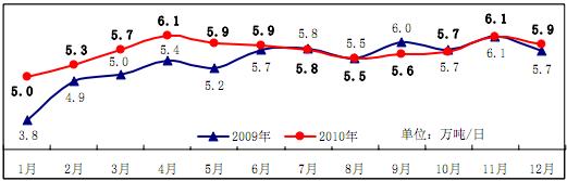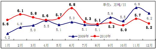 圖 3 2009-2010 年甲醇日均產(chǎn)量曲線