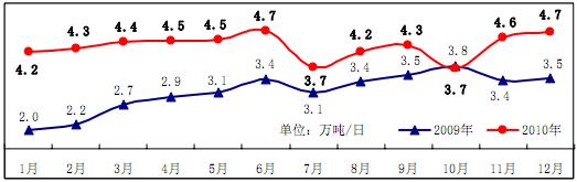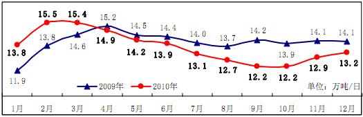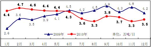 圖 4 2009-2010 年純堿日均產(chǎn)量曲線
