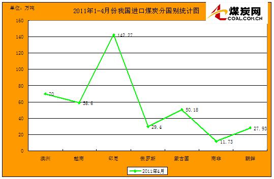 2011年1-4月份我國進口煤炭分國別統(tǒng)計圖