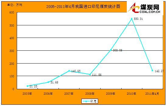 2005-2011年4月我國進口印尼煤炭統(tǒng)計圖