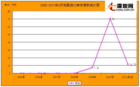 2005-2011年4月我國(guó)進(jìn)口南非煤炭統(tǒng)計(jì)圖