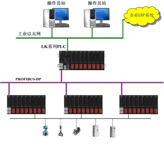 本系統(tǒng)采用計(jì)算機(jī)、PLC、智能儀表以及電氣控制柜構(gòu)成的控制監(jiān)視管理系統(tǒng),通過PLC程序指令控制現(xiàn)場電氣設(shè)備的單機(jī)或者聯(lián)鎖運(yùn)行,監(jiān)視電氣設(shè)備的運(yùn)行狀態(tài),智能儀表采集現(xiàn)場溫度,壓力等數(shù)據(jù),下位機(jī)PLC和上位機(jī)HollyView 通過以太網(wǎng)進(jìn)行數(shù)據(jù)交互,通過上位機(jī) HollyView 實(shí)時(shí)以動態(tài)圖形顯示生產(chǎn)流程,生產(chǎn)中的重要工藝數(shù)據(jù),設(shè)備運(yùn)行狀態(tài),報(bào)警故障信息,同時(shí)用戶可以根據(jù)生產(chǎn)中的實(shí)際情況通過上位機(jī) HollyView 修改生產(chǎn)工藝參數(shù)來調(diào)整生產(chǎn)。使整個(gè)系統(tǒng)最大化的適應(yīng)生產(chǎn)的需要。并且可以通過工業(yè)以太網(wǎng)和企業(yè)的ERP進(jìn)行數(shù)據(jù)交換,便于企業(yè)對生產(chǎn)線進(jìn)行管理。