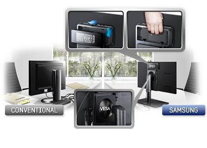 三星智翼CA650定位于商務辦公人群,它的外觀大方、沉穩(wěn),其底座幾乎則提供了所有調(diào)節(jié)功能,其中包括左右旋轉(zhuǎn)、俯仰角、支持橫豎屏、150mm的高低調(diào)節(jié)范圍,這讓使用者可以根據(jù)需要顯示的內(nèi)容和使用的舒適度情況,任意調(diào)節(jié)顯示器的角度和高度。