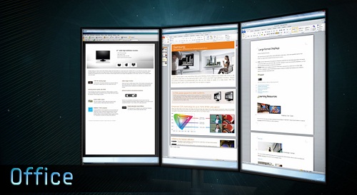 眾所周知,實現(xiàn)顯示器多屏拼接接首先要得益于ATI顯卡的Eyefinity技術(shù),在Windows Vista/7和Linux操作系統(tǒng)下,開啟ATI顯卡 “催化劑”控制中心里的SLS模式(SingleLargeSurface)即可實現(xiàn)將多臺獨立的顯示器,拼接成為一個擁有超高分辨率的單獨多屏顯示系統(tǒng),由此帶來的寬顯示域,不僅可以被應(yīng)用于游戲領(lǐng)域,為那些頂級玩家?guī)肀普娴挠螒蝮w驗,同時,大幅擴(kuò)大之后的可視工作區(qū),更為安防監(jiān)控、金融、工業(yè)生產(chǎn)、影像編輯工作室等行業(yè)領(lǐng)域提供了一個全新的解決方案。