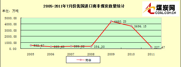 2005-2011年7月份我國進(jìn)口南非煤炭數(shù)量統(tǒng)計(jì)