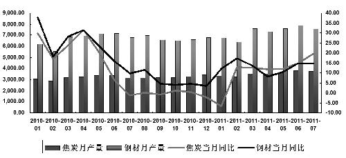 焦炭的成本90%由焦煤價格決定,其他人工、燃料動力、折舊、輔料等占10%。我國是一個富煤大國,但煉焦煤的儲量并不豐富,目前我國焦煤對外依存度約為10%。據(jù)中國煤炭工業(yè)協(xié)會的預(yù)測,2011年焦煤進口量將為4900萬噸左右,進口依存度將不會超過12%,因此,焦炭的成本主要取決于國內(nèi)焦煤的價格。另有統(tǒng)計表明,動力煤與焦煤的相關(guān)系數(shù)高達(dá)0.96,所以動力煤價格的變化也極具參考意義。
